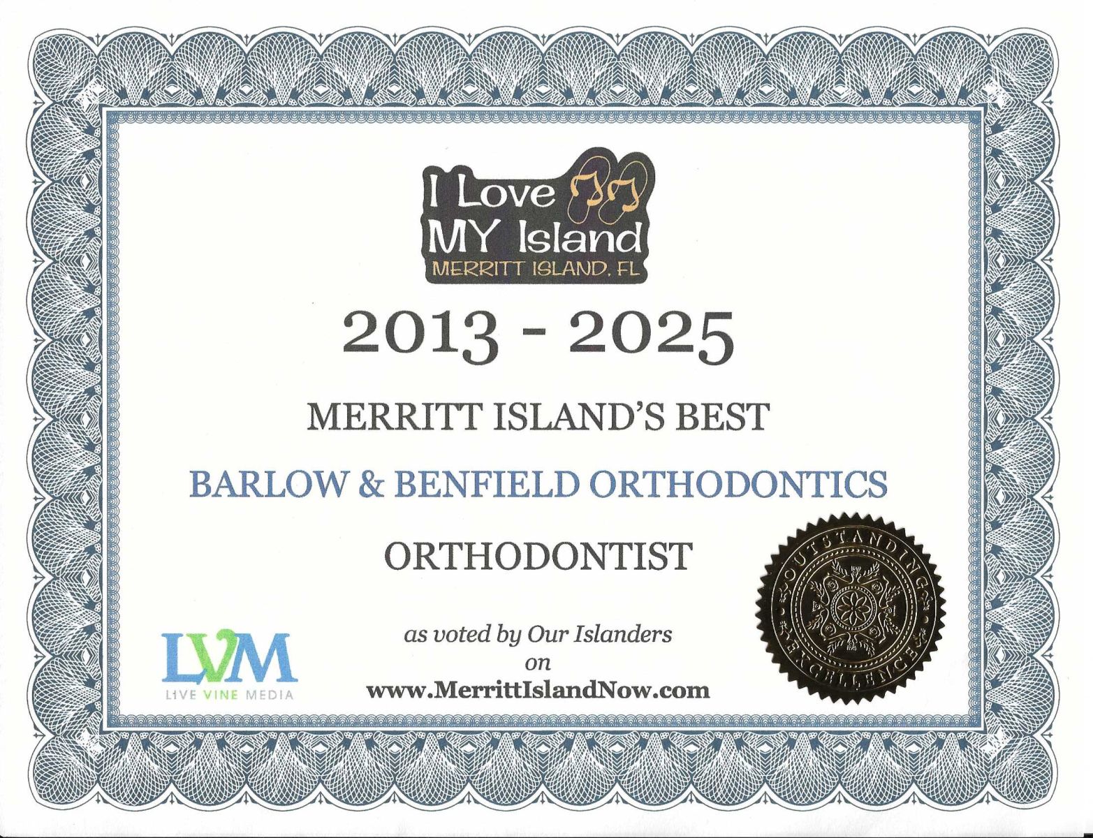 Barlow & Benfield Orthodontics has been nominated Best Of Merritt Island's Best Orthodontist for many years. I Love My Island does an annual contest and we are PROUD to be the BEST from 2013 through 2024!